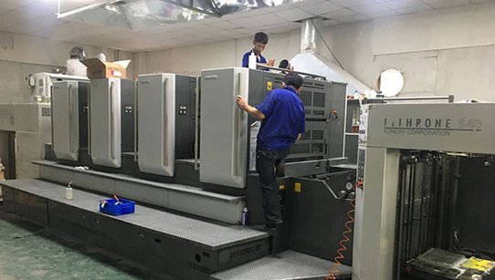 擁有2臺(tái)日本小森全開(kāi)四色印刷機(jī),UV上光過(guò)油機(jī),全自動(dòng)燙金模切機(jī),瓦楞機(jī)、覆膜機(jī)、絲網(wǎng)機(jī)、全自動(dòng)高速糊盒機(jī)等印刷后道設(shè)備。